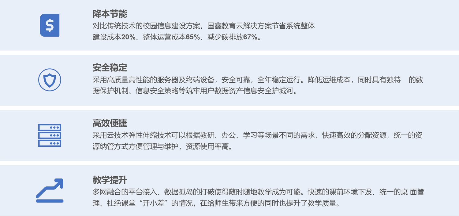 qy球友会(千亿)电子教育云解决方案是针对教育业现状及遵循政策指导方向,采用自研国产硬件及自研软件平台,推出的教育行业云平台方案。方案基于云计算技术、互联网+战略格局、契合融合创新的思路,助力校园智慧建设,更好地为教育改革和开展提供信息化基础环境支撑。