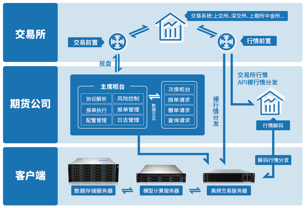 Gooxi光影服务器广泛适用于金融行业业务,如电子贸易、DMA、交易前风险检查、市场数据处理、时延监控加速算法交易及加速Tick to trade。可用于高频交易、极速报单、趋势跟踪、跨期套利、做市商等场景。